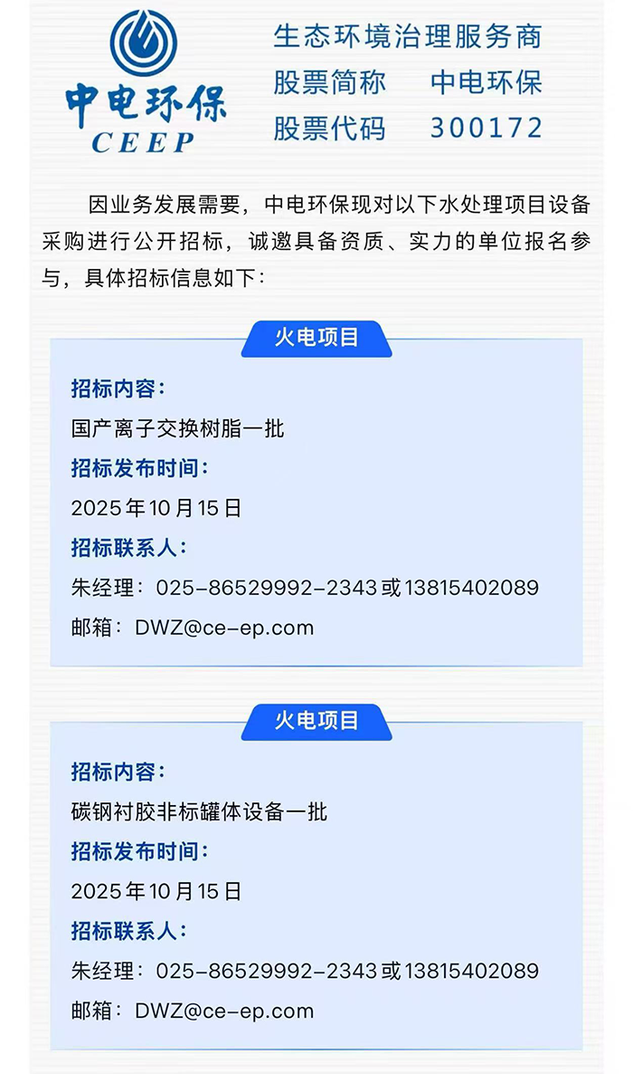 【爱体育网(中国)·招标】诚邀参与:水处理项目设备采购公开招标