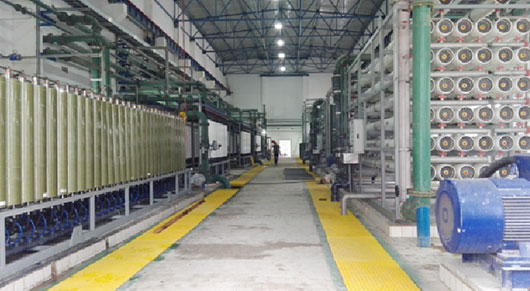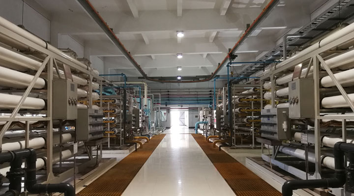 经过预处理(混凝、沉淀、过滤)的原水,在压力驱动下,利用微滤、超滤去除悬浮物、 胶体、病毒等杂质,利用反渗透预脱盐,利用电除盐或离子交换深度除盐,达到各行业所需高品质除盐水的水质要求。采用自主专利技术,工艺可靠, 产水水质好,自动化程度高,运行维护简便等。